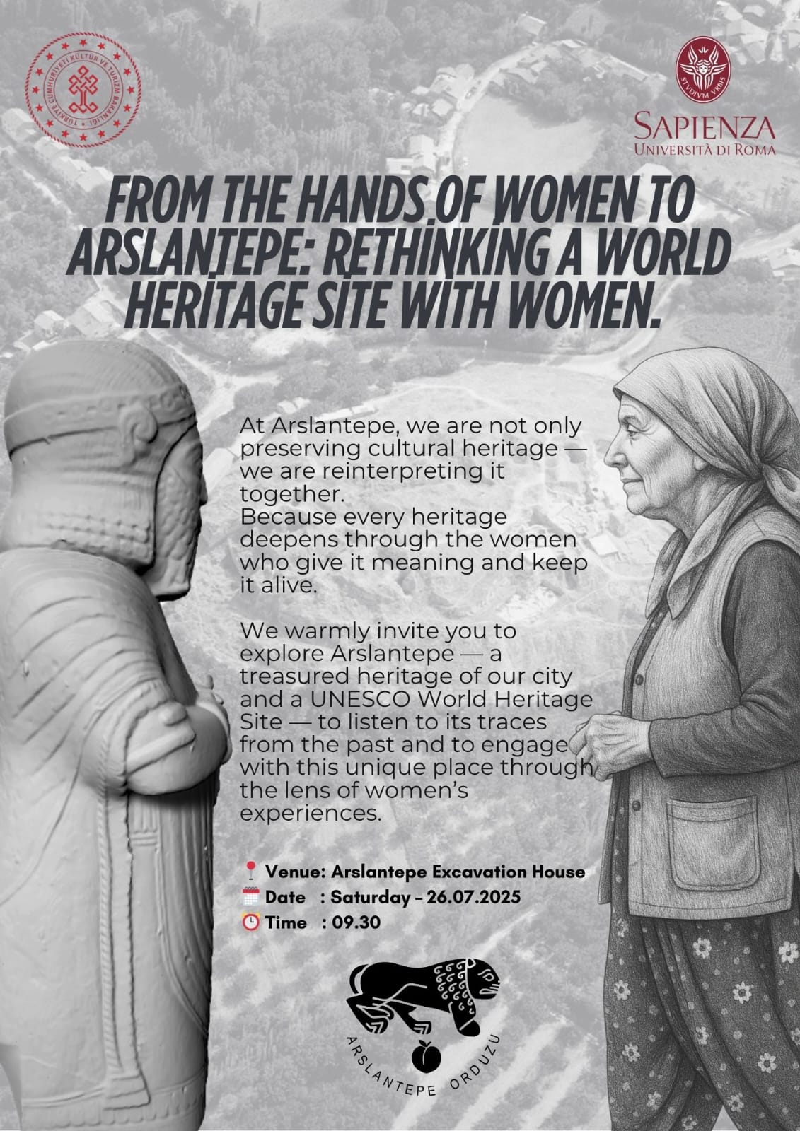 The project aims at providing an innovative model of good practice in Public Archaeology for the protection, conservation and increase in public awareness of archaeological sites of the UNESCO World Heritage list, and at the same time enhance international scientific and socio-cultural cooperation. The site of Arslantepe, in the Malatya plain in Turkey, which is an open-air museum of the UNESCO list since 2021, is proposed as a case study. At Arslantepe we are elaborating and testing an integrated project of protection of the site that will provide a solid reference study for future planning at other sites; a composite way of dealing with Cultural Heritage for present and future generations, integrating scientific research and conservation with needs and expectations of society, and working with direct commitment of the local communities. Three main lines of activities will be carried out by the three units involved in the project: